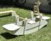 - Elevated by a sleek wood stand – teak wood for the light and dark stained options, mahogany wood for the black stained option